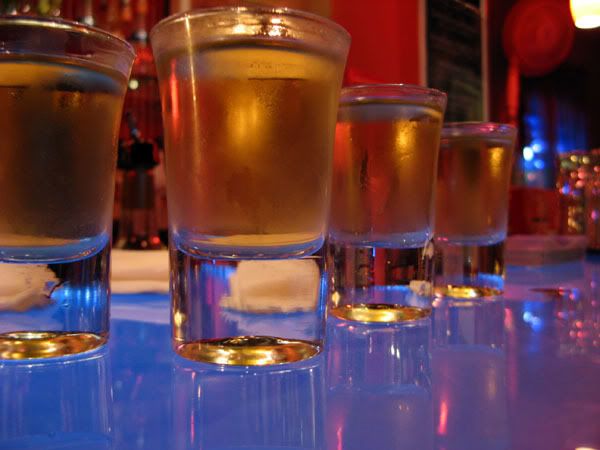 We order half-priced drinks because it’s happy hour. Chocolate martini for me. People also get the “I <3 Shanghai” shirts (in Chinese). I don’t think I had enough money with me to buy one, so maybe I’ll go back another day. Frank buys a round of Absinthe shots, so now I can say that I’ve had some of that. It’s rather disgusting, tastes somewhat like licorice, and you can literally feel it course through your veins. No hallucinations though.