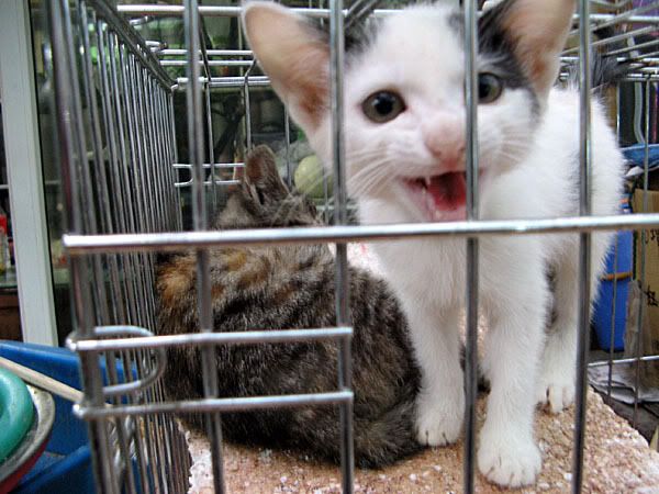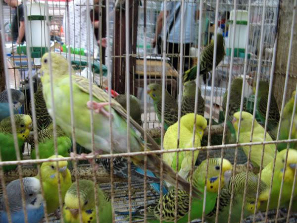 Then we go into a fish/bird/animal/insect market. It is odd. Crickets in little wicker boxes, the cutest kitties and puppies you ever did see, and birds that say “ni hao” (how are you?) and “tai gui le” (too expensive).