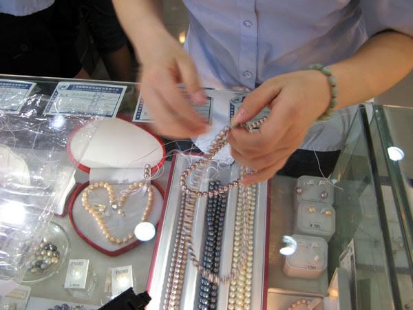 Stringing pearls in a shop