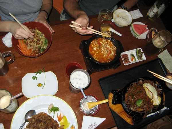 Dinner at the place with swing benches again, and this time we were only a party of four so we got the swings. Same waitress too, and I think she was less exasperated, since we did a better job of communicating this time. Passion fruit tea is amazing.