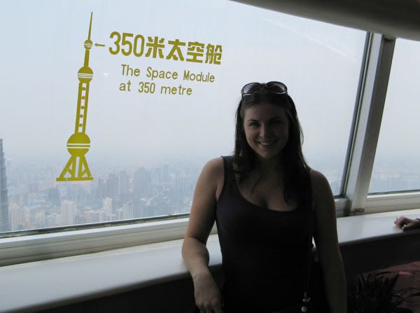 First stop, Oriental Pearl Tower. It’s sorta symbolic of Shanghai, and it’s rather otrocious. 135 yuan (about $18) will get you to the highest ball (see picture). You can feel it sway a bit, but the view is nice. We had wanted to catch it on a clear day so there was actually visibility.