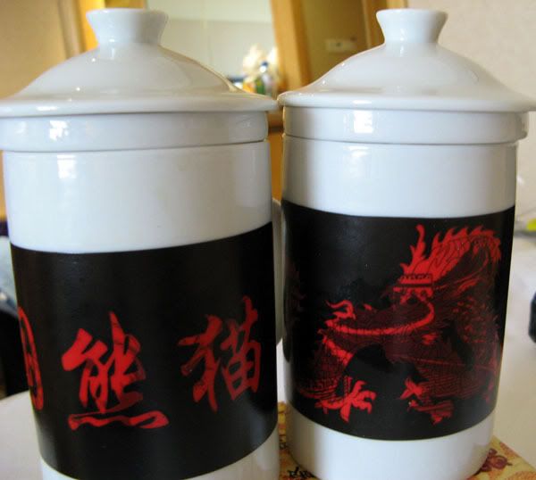 Tea mugs (there’s a strainer inside) that change design when filled with boiling water. One becomes a panda picture, the other has a landscape.