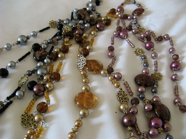 Long necklaces (they double around). I couldn’t decide what color I liked, so I bought three.