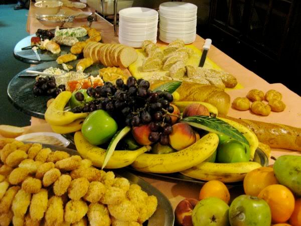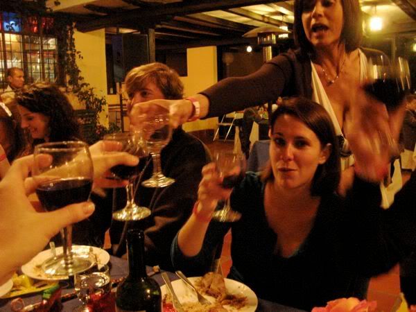 Lots of pre-drinking since there were a few free cocktails, and beers were $1.50. I had some drink I could never remember how to say, made with a local liquor. Hor d’oerves were a lot of bread and goat cheeses, as well as some meat on a stick (carne!).