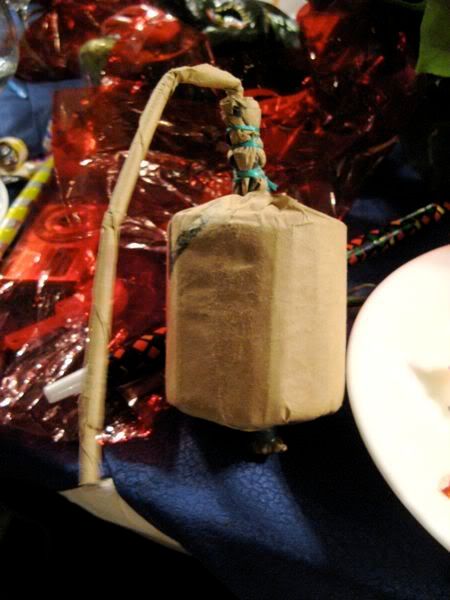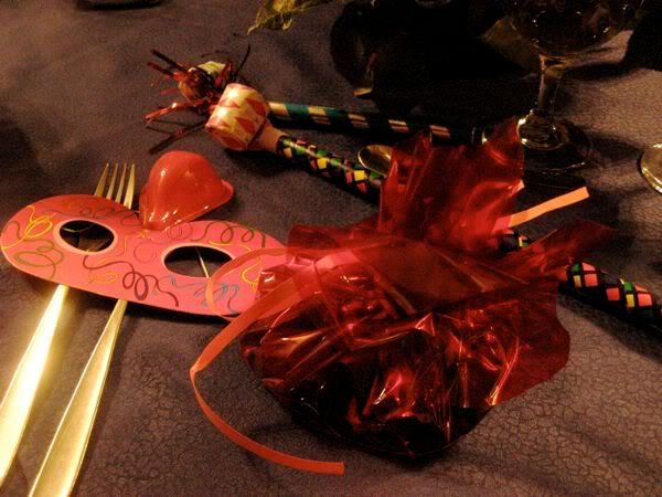 party favors (which includes a bag of 12 grapes, that you are supposed to eat during the countdown, but which everyone practiced with beforehand, some technique where you bounce it off your hand and catch it in your mouth….so we never really got a chance to eat them on the countdown)