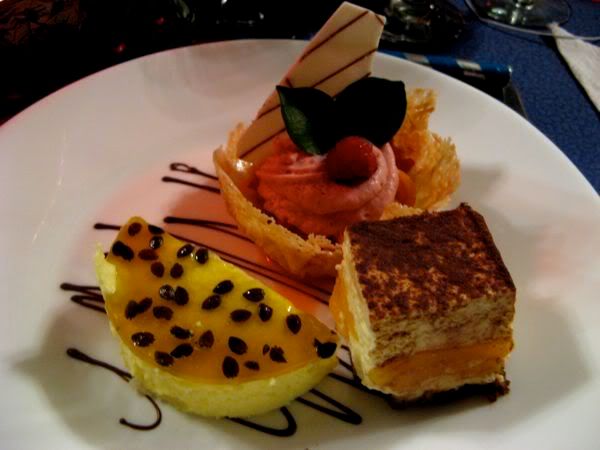 dessert also provided several choices, a flan, sorbet, and another custard type thing.