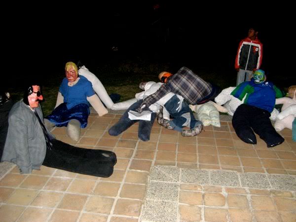 the puppet burning was, odd to say the least. but we doused with something (don't think it was gasoline, unless ecuadorian gasoline is really that weak) and kicked and prodded and lit our puppets.