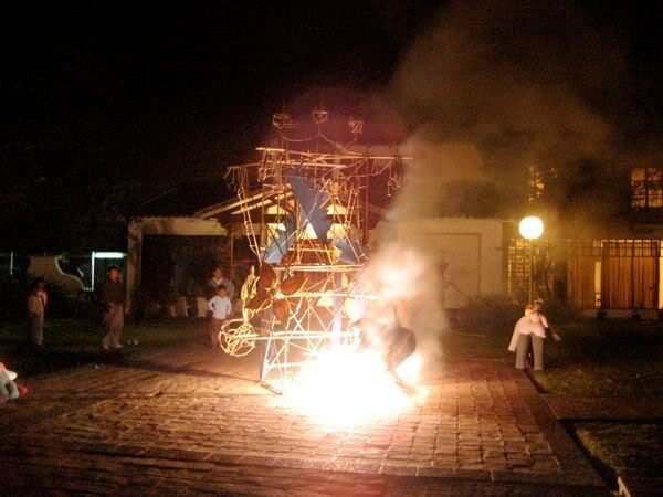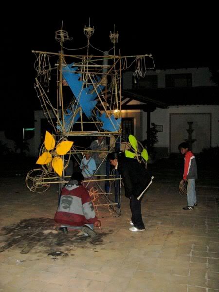 we counted down (in spanish) to the vios anejos. then outside in the courtyard where our puppets had been set up for the flaming.
