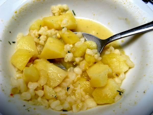 Lunch at the hotel (perhaps my last meal there, at this rate). A starter soup that was white corn and potato, a little bland.