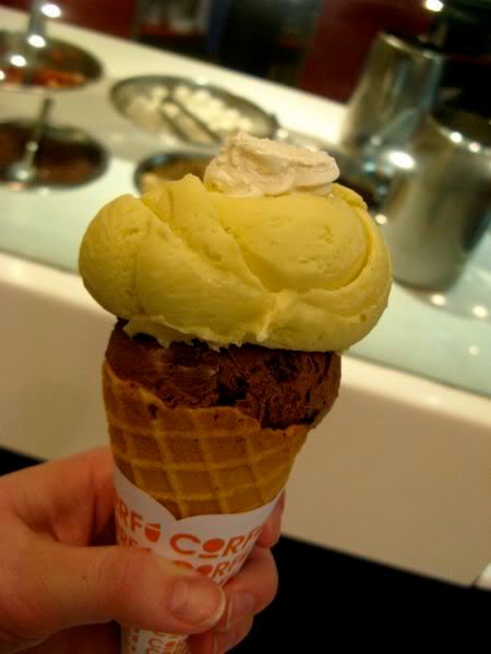 The bus brought us back to the hotel, but dropped a few of us off early to grab some ice cream. I went out on a limb and got a scoop of something foreign (naranjilla) and a scoop of something familiar (chocolate with chocolate chips). Naranjilla was described to me by my Ecuadorian friend Freddy, as the bastard love child of a strawberry and an orange, with the sugar removed. Naranjilla flavored ice cream was…not bad. The flavor itself was fine, I’m just not a very fruity-ice-cream type person, and the flavor was a bit strong to enjoy for more than a few licks. So after awhile I was totally lame and pushed the top scoop off, and then enjoyed the chocolate chip.