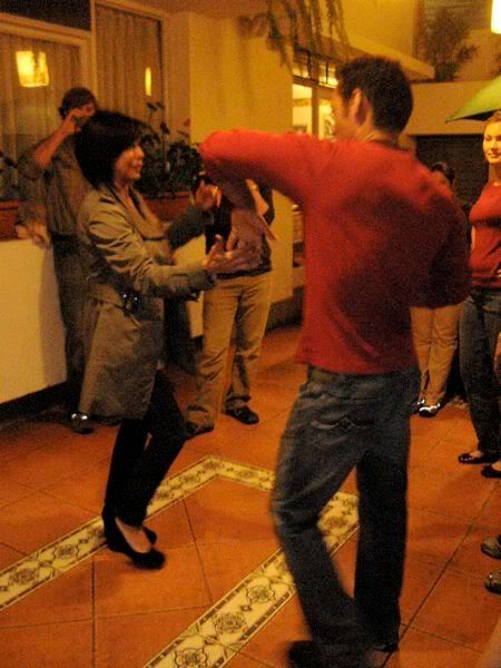 Back to the hotel, dinner at 7:30pm. The soup starter was vegetable, and tasted about the same as the corn soup from lunch. Entrée was a chewy beef and gravy, with rice and salad. I put down some of the rice and gravy, and vowed to go back to the Crepes and Waffles place tomorrow. Dessert was actually pretty a good, a chocolate mousse that was very sweet and was almost the consistency of sorbet.